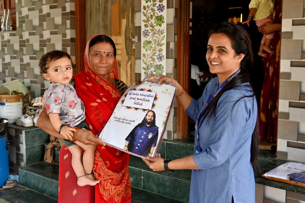 આ અંતર્ગત દ્વારકા, સોમનાથ, અંબાજી અને સાળંગપુર સહિતના ગુજરાતના મુખ્ય ધર્મસ્થળો ખાતે યાત્રાળુઓ માટે માળખાકીય વિકાસ ઉપરાંત જામનગર અને અન્ય સ્થળોએ શૈક્ષણિક માળખાગત સુધારાના કાર્યો, ગૌશાળાની સ્થાપના, રિલાયન્સના કોન્ટ્રાક્ચ્યુઅલ કામદારો માટે મિઠાઇ, સામુદાયિક ભોજન સમારંભો, જામનગર રિફાઇનરીની આસપાસના ગામડાંની મહિલાઓ માટે સાડીના વિતરણ અને ગ્રામીણ વિસ્તારોમાં આવશ્યક માળખાકીય સુવિધાઓ પૂરી પાડવાનો સમાવેશ થાય છે.