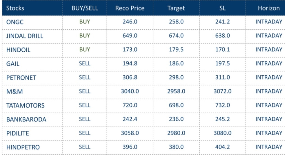 MUMBAI, 13 JUNE: અગ્રણી બ્રોકરેજ હાઉસ તથા ફંડ હાઉસ તરફથી પસંદગીના સ્ટોક્સમાં ખરીદી\ વેચાણ\ હોલ્ડ કરવા માટે ભલામણ કરવામાં આવી છે. તે રોકાણકારોના અભ્યાસ માટે અત્રે રજૂ કરીએ છીએ. જિયો પોલિટિકલ ક્રાઇસિસ તેમજ ગુરુવારે નિફ્ટીએ 24800ના સ્ટ્રોંગ સપોર્ટ નજીક હોવાના કારણે તેમજ ઇઝરાયેલાના ઇરાન ઉપર હુમલા સહિતના કારણોથી વૈશ્વિક બજારો તેમજ સવારે ગીફ્ટ નીફ્ટી નેગેટિવ હોવા જેવાં નેગેટિવ ફેક્ટર્સને ધ્યાનમાં રાખીને ટ્રેડર્સ અને ઇન્વેસ્ટર્સને સ્ટોક સ્પેસિફિક, સ્ટોપલોસ અને સાવચેતી પૂર્વક તેજીનો વેપાર કરવાની સલાહ મળી રહી છે.