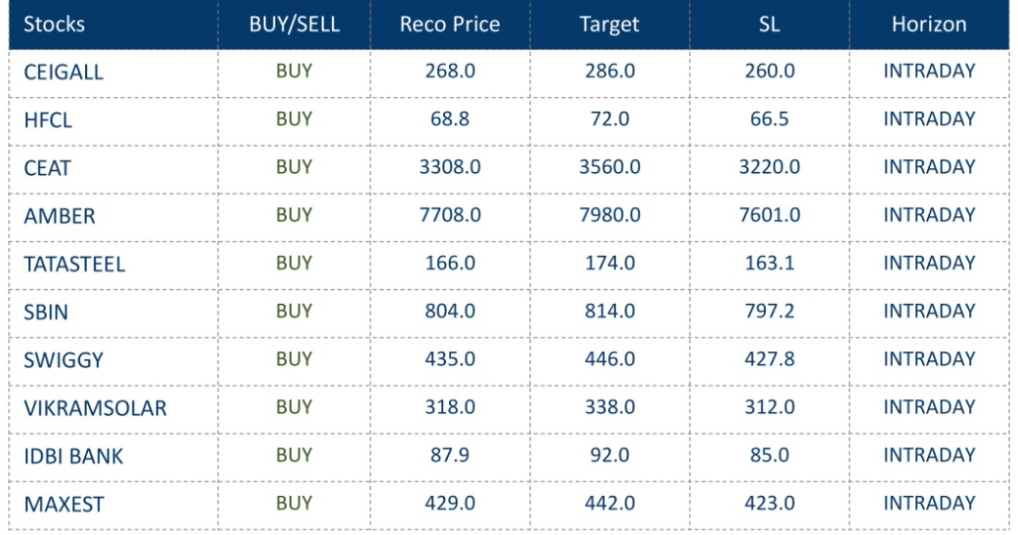 BROKERS CHOICE: SWIGGY, ETERNAL, CEAT, INDUSTOWER, TATASTEEL, JSPL, SAMVARDHAN, SAIL, SPICEJET, SAIL, OLA, VEDANTA