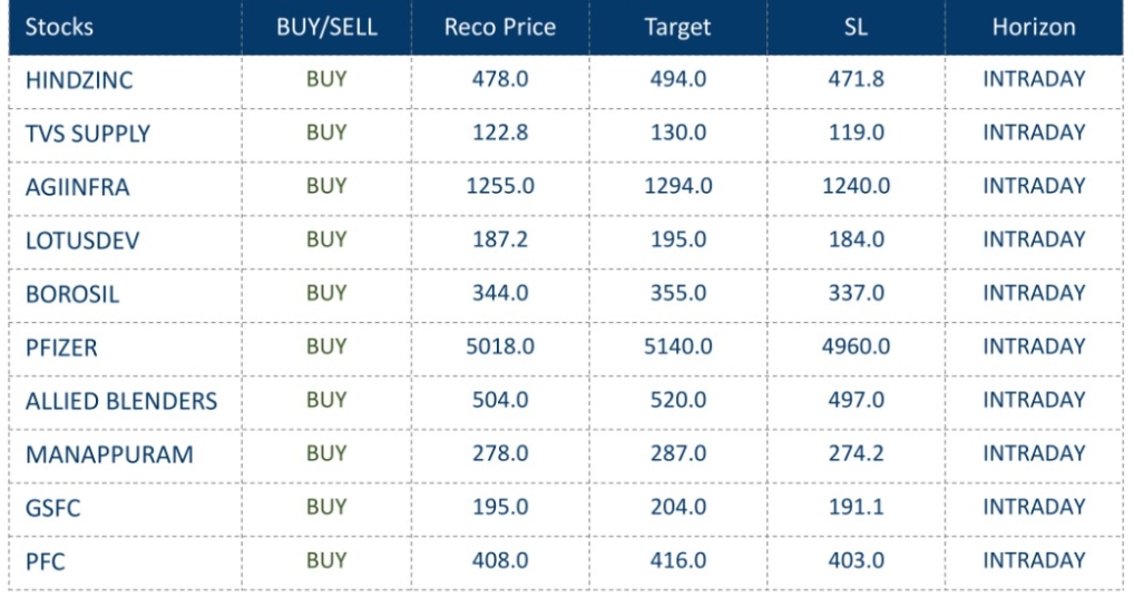 MUMBAI, 1 OCTOBER: અગ્રણી બ્રોકરેજ હાઉસ તથા ફંડ હાઉસ તરફથી પસંદગીના સ્ટોક્સમાં ખરીદી\ વેચાણ\ હોલ્ડ કરવા માટે ભલામણ કરવામાં આવી છે. તે રોકાણકારોના અભ્યાસ માટે અત્રે રજૂ કરીએ છીએ.