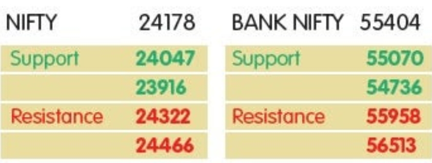 નિફ્ટીએ 24,500-24,600 તરફની તેજી માટે 24,350થી ઉપર સ્કેલ અને ટકાવી રાખવાની જરૂર છે. ત્યાં સુધી, કોન્સોલિડેશન ચાલુ રહી શકે છે, તાત્કાલિક સપોર્ટ 24,000-23,950 પર રહેશે; નિષ્ણાતોના મતે, આ ઝોનથી નીચે આવવાથી 23,800 માટેનો દરવાજો ખુલી શકે છે.