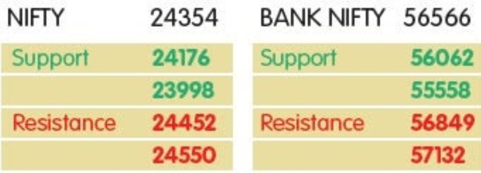 24,700–24,800 તરફ વધુ ઉપરની સફર માટે, નિફ્ટીએ 24,400 ની ઉપર એક ખાતરીકારક અને સતત બંધ પ્રદાન કરવો જોઈએ. નિષ્ણાતોના મતે, તાત્કાલિક સપોર્ટ 24,100 પર મૂકવામાં આવ્યો છે, ત્યારબાદ 23,900 એક મહત્વપૂર્ણ લેવલ તરીકે છે. ટેકનિકલ સેટઅપ તેજીવાળાઓની તરફેણમાં રહે છે; તેથી, તેજીના કિસ્સામાં, 24,500–24,700 એ જોવાના લેવલ્સ છે, પરંતુ જો નિફ્ટી 24,400 ને વટાવી જાય અને તેનાથી ઉપર ટકી રહે તો. જોકે, તાત્કાલિક સપોર્ટ 24,200–24,100 ઝોનમાં મૂકવામાં આવ્યો છે, ત્યારબાદ 24,000–23,900 મહત્વપૂર્ણ સપોર્ટ તરીકે આવે છે.