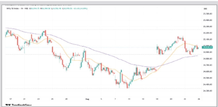 અમદાવાદ, 26 ઓગસ્ટઃ 25000 પોઇન્ટની જાદૂઇ સપાટી નજીક પહોંચેલો NIFTY ધીરે ધીરે મજબૂત બનવા સાથે રોકાણકારોનો વિશ્વાસ વધી રહ્યો છે. 24967 પોઇન્ટ બંધ આપ્યા બાદ NIFTYની મંગળવારની ચાલ માટે પહેલાં ગીફ્ટ NIFTY જોઇએ તો પોઝિટિવ ઝોનમાં છે. સાથે સાથે પ્રાઇમરી માર્કેટમાં આજે મેઇનબોર્ડ ખાતે એક સાથે ચાર આઇપીઓ લિસ્ટેડ થવા જઇ રહ્યા છે. તેના કારણે માર્કેટમાં વોલેટિલિટી, વોલ્યૂમ્સ વધવાની શક્યતા છે. ટેકનિકલી જોઇએ તો NIFTYની મૂવિંગ એવરેજ સુધારા તરફી છે. જેમાં NIFTY માટે સપોર્ટ લેવલ 24901- 24834 આસપાસ હોવાનું રિલાયન્સ સિક્યુરિટીઝનો ટેકનિકલ રિસર્ચ રિપોર્ટ સૂચવે છે.