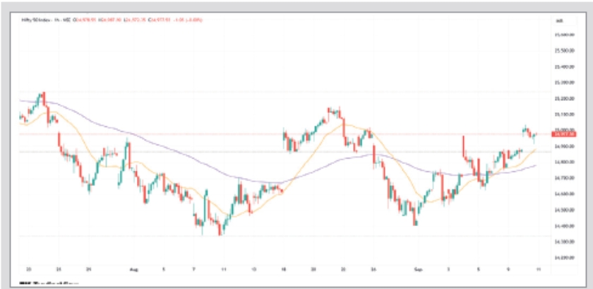 અમદાવાદ, 11 સપ્ટેમ્બરઃ નિફ્ટી તેની 50 દિવસીય મૂવિંગ એવરેજ ઉપર ટ્રેડ થઇ રહ્યો છે. જે અપવર્ડ ટ્રેન્ડિંગ અને બુલિશ મોમેન્ટમનો સંકેત આપે છે. આરએસઆઇ 50 ઉપર છે. જે પણ નેચરલ ટૂ પોઝિટિવ સ્ટ્રેન્થ આપવાનો સંકેત આપે છે. નિફ્ટી માટે મહત્વના સપોર્ટ લેવલ્સ 24800 અને રેઝિસ્ટન્સ 25200 પોઇન્ટ્સ હોવાનું રિલાયન્સ સિક્યુરિટીઝનો ટેકનિકલ રિસર્ચ રિપોર્ટ સૂચવે છે.