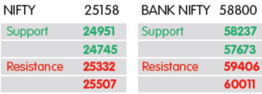 MARKET LENS: NIFTY માટે સપોર્ટ 24951- 24745, રેઝિસ્ટન્સ 25332- 25507