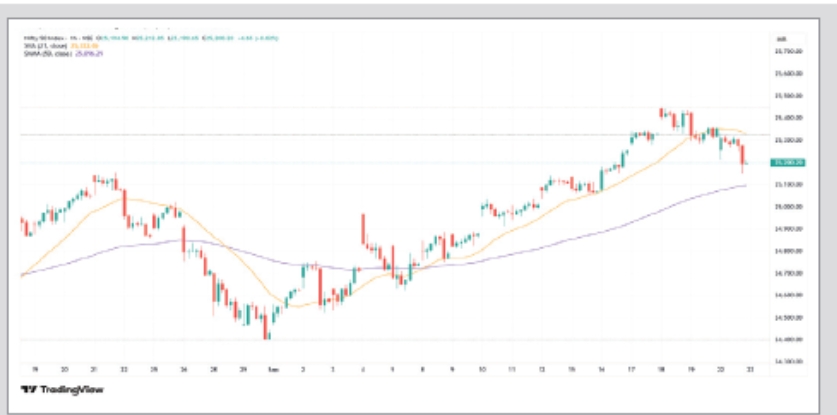 જો NIFTY 25,150 સપોર્ટ લેવલ જાળવી રાખે છે, તો તેજીવાળા NIFTYને 25,450–25,500 તરફ લઈ જઈ શકે છે, ત્યારબાદ 25,700 સુધીનો સુધારો શક્ય જણાય છે. ઘટાડામાં NIFTY માટે જોવાલાયક લેવલ્સ 25,000–24,900 છે.