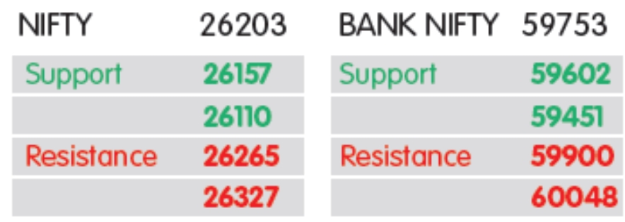 ટેકનિકલ અને મોમેન્ટમ ઇન્ડિકેટર્સ દર્શાવે છે કે, નિફ્ટી અને બેંક નિફ્ટી પોઝિટિવ ઝોનમાં રહ્યા છે. જો નિફ્ટી ફરીથી 26,310 (રેકોર્ડ હાઇ) થી ઉપર ટકી રહે છે, તો 26,500–26,600 લેવલ્સ જોવા મળી શકે છે, જ્યારે તાત્કાલિક મુખ્ય સપોર્ટ 26,100–26,000 લેવલ્સ આસપાસ જણાય છે.