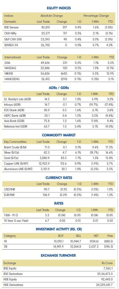 20 ફેબ્રુઆરીના રોજ, નિફ્ટી 117 પોઈન્ટ (0.46 ટકા) વધીને 25,571 પર પહોંચ્યો હતો, જ્યારે બેંક નિફ્ટી 432 પોઈન્ટ (0.71 ટકા) વધીને 61,172 પર બંધ રહ્યો હતો. માર્કેટ બ્રેડ્થ નેગેટિવ રહેવા સાથે NSE પર 1,395 સુધરેલા શેર સામે લગભગ 1,532 શેર ઘટ્યા હતા.