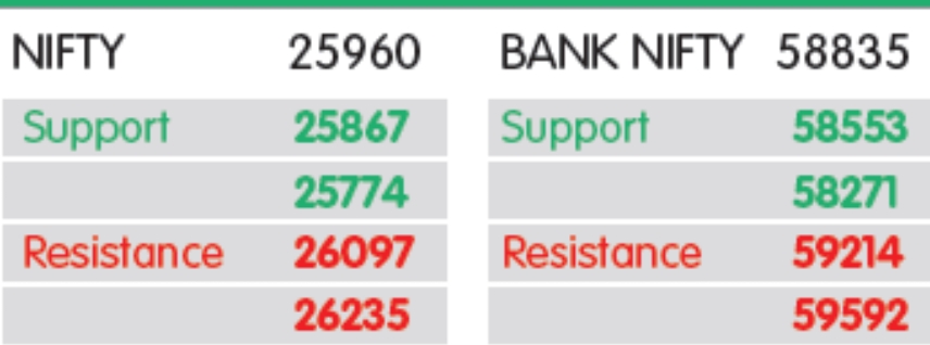 માર્કેટ લેન્સઃ નિફ્ટી માટે સપોર્ટ 25867- 25774, રેઝિસિટન્સ 26097- 26235