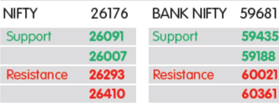 માર્કેટ લેન્સઃ નિફ્ટી માટે સપોર્ટ 26091- 26007, રેઝિસ્ટન્સ 26293- 26410