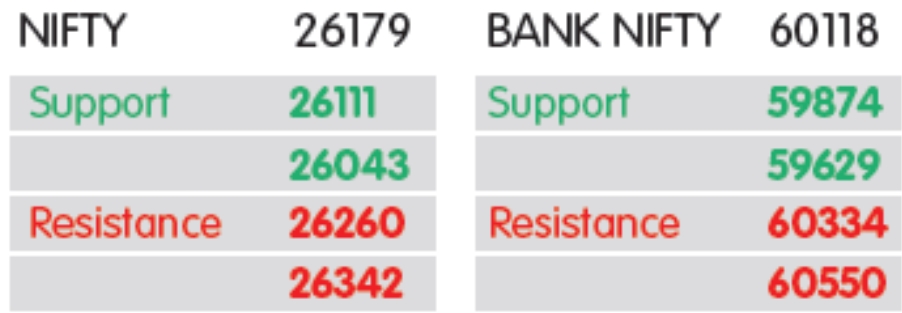 માર્કેટ લેન્સઃ NIFTY માટે સપોર્ટ 26111- 26043, રેઝિસ્ટન્સ 26260- 26342