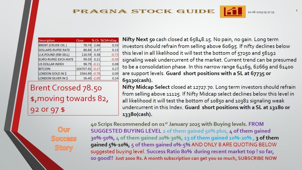 MARKET MONITOR: BRENT CRUDE CROSSED $78.50, MOVING TOWARDS 82/ 92/ 97!!