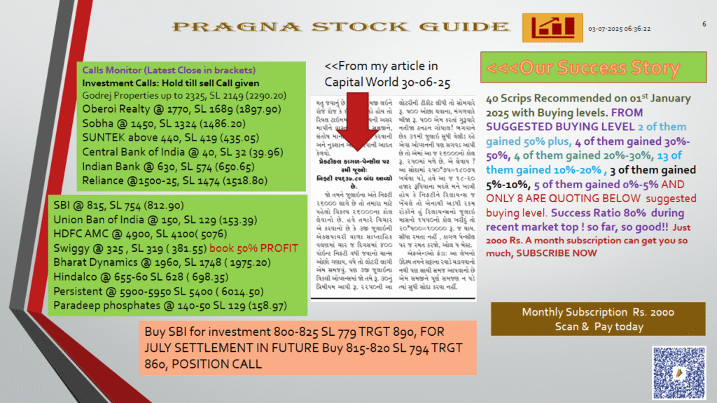 (સ્પષ્ટતા: અત્રેથી આપવામાં આવતી તમામ પ્રકારની માહિતી કોઇપણ પ્રકારે રોકાણ/ ટ્રેડીંગ માટેની સલાહ નથી. બજારોમાં રોકાણ જોખમોને આધીન છે અને રોકાણ કરતા પહેલા કૃપા કરીને તમારા સલાહકારની સલાહ લો.)