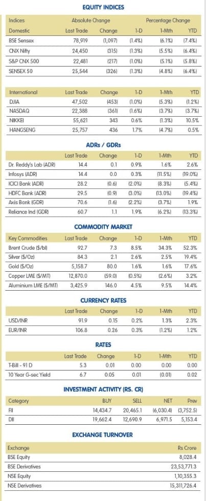 વૈશ્વિક પડકારો વચ્ચે બ્રેન્ટ ક્રૂડ 100 ડોલર પ્રતિ બેરલની સપાટી વટાવી જતાં તેમજ ગિફ્ટ નિફ્ટી પણ 500 પોઈન્ટના ઘટાડે ખૂલતાં આજે ભારતીય શેરબજારો મંદ રહેવાનો અંદાજ છે.