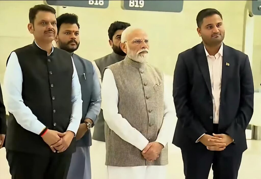 સંબોધન અગાઉ વડાપ્રધાને એરપોર્ટમાં ઉભી કરાયેલી વિશ્વકક્ષાની સુવિધાઓની મુલાકાત લઈ તેની સમીક્ષા કરી હતી.  તેમની સાથે રાજ્યપાલ  આચાર્ય દેવવૃત, મુખ્યપ્રધાન  દેવેન્દ્ર ફડણવીસ, કેન્દ્રિય નાગરિક ઉડ્ડયન મંત્રી  રામ મોહન નાયડુ કિન્જારાપુ, નાયબ મુખ્ય મંત્રીઓ સર્વ  અજીત પવાર, એકનાથ શિંદે, કેન્દ્રના નાગરિક ઉડ્ડયન રાજ્યમંત્રી મુરલીધર મોહન અને અદાણી એરપોર્ટ્સના ડાયરેક્ટર  જીત અદાણી હતા.