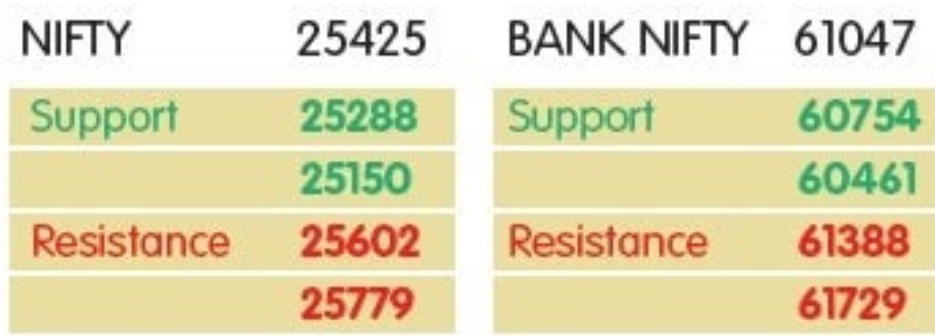 દરમિયાન, બેંક NIFTY તેના રેકોર્ડ હાઇ લેવલથી નીચે ટ્રેડ થાય ત્યાં સુધી સાઇડવે ટ્રેડ જાળવી રાખે તેવી શક્યતા છે, 60,800–60,500 પર સપોર્ટ સાથે. જોકે, નિષ્ણાતોએ જણાવ્યું હતું કે, રેકોર્ડ હાઇ લેવલથી ઉપર ખાતરીપૂર્વકની તેજીના કિસ્સામાં 62,000 એ જોવાનું લેવલ છે.